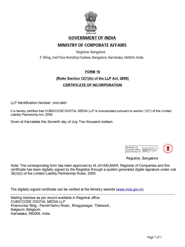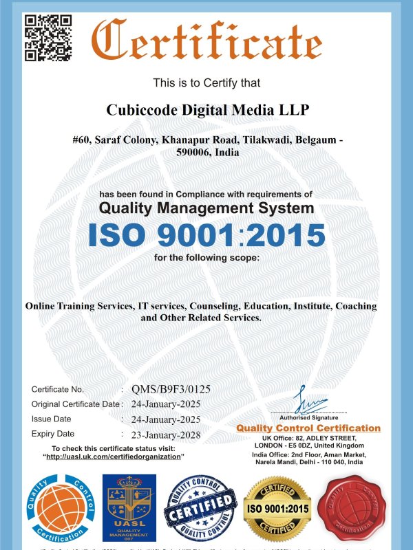 About Cubiccode Digital Media LLP - ISO 9001:2015 Certified Company.